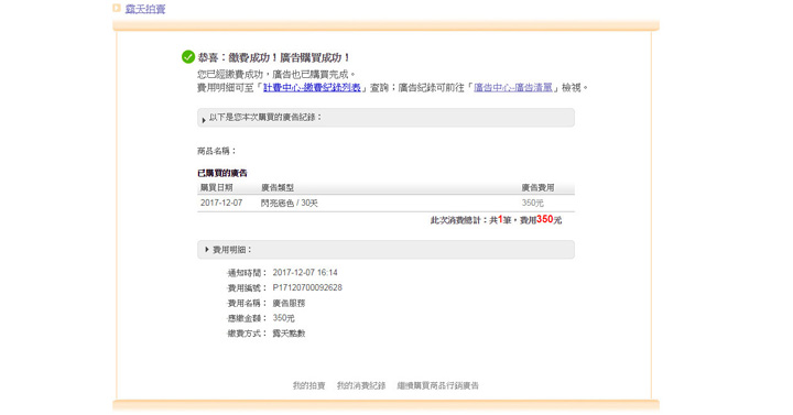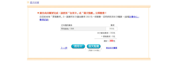 3.廣告過期或商品下架時(商品售完、賣家自行下架、未設定自動重新刊登而下架、露天下架),廣告將立即結束。