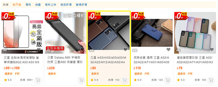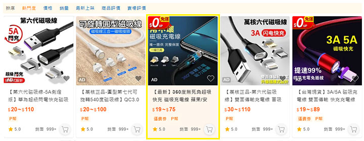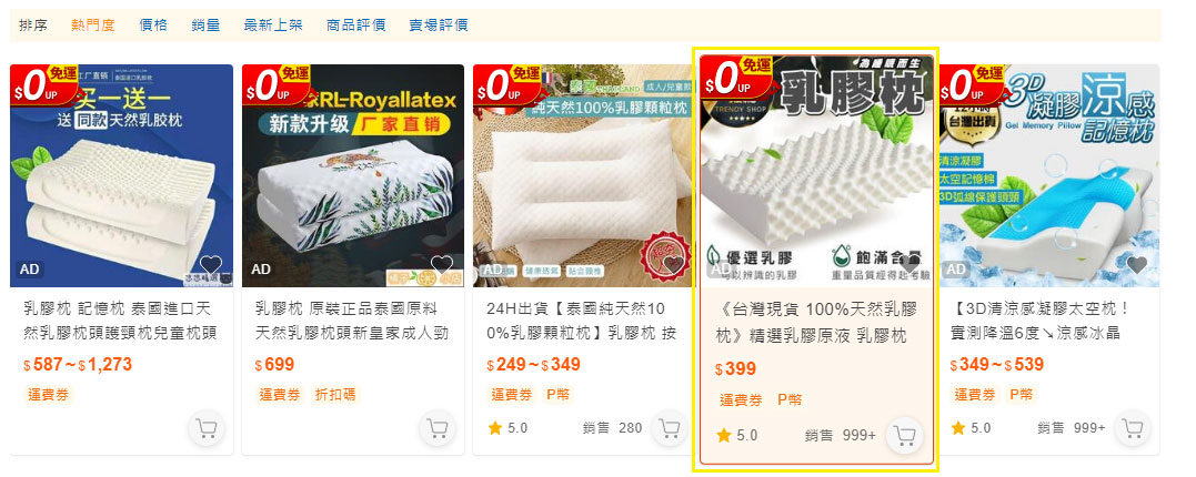 2.在商品列表所有排序方式(預設BuyRank、直購價、已賣數量、最新刊登、賣家評價)皆可呈現廣告效果。