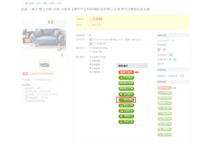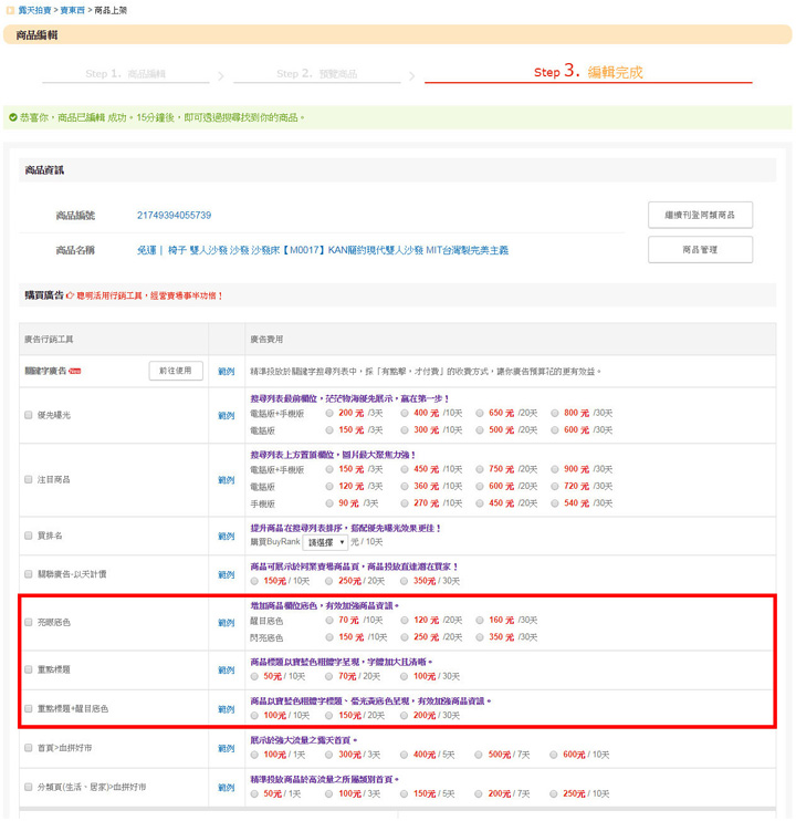 1. 商品上架/修改頁:商品上架/修改時,即可順便買廣告