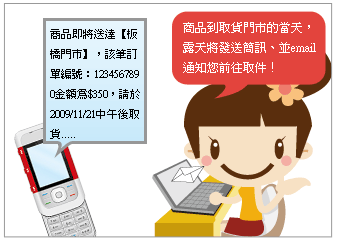 貨品到i郵箱的當天,露天拍賣會以手機簡訊與email通知買家取件時間,買家必須在3天內取件完畢。