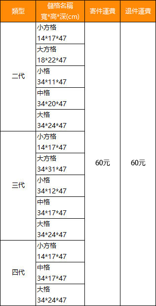 ▲請預留足夠空間(寬或高約5公分)方便收件人及郵務士拿取;單一儲格僅能放置一個包裹且不可併箱。