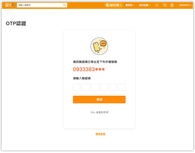 step3 . 送出資料後,會請您進行手機簡訊認證,以確保您帳戶的安全。