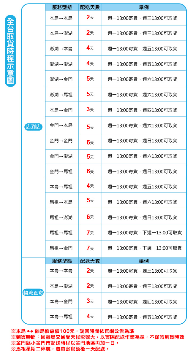 2.配送範圍僅限於台灣本島及部分離島,且台灣本島部分