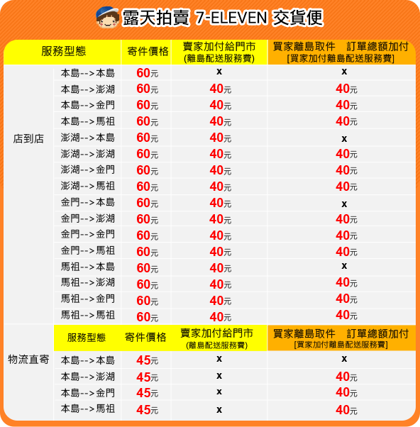 ※ 買家須於貨到門市7天內取貨,若逾期未領,門市交寄商品將退回賣家所指定的退件門市,賣家免支付退貨費用。(優惠時間延長至2023/12/31)