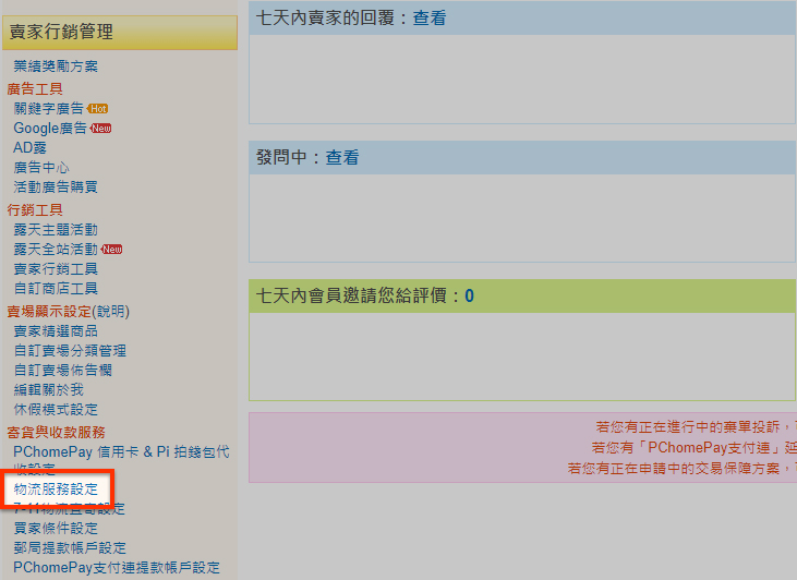 物流服務設定