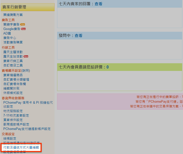 您也可以在「我的拍賣」中,透過『付款及運送方式大量編輯』設定所有出售中商品的付款及運送方式。