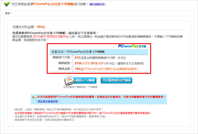 請注意: 1.選用【PChomePay支付連 ATM轉帳】進行結帳,若轉帳帳號過了效期(5天),露天系統會將結帳單狀態從"已結帳"轉回"未結帳"。 2.選用【PChomePay支付連 餘額付款】或【PChomePay支付連 信用卡】進行付款,若因不可抗拒之因素,導致未能完成付款,系統於資料更新作業時,會將訂單狀態轉回"未結帳"(更新作業時間:每半小時處理前一小時支付失敗的訂單)。 選擇「郵局快捷貨到付款」: 當買家選擇郵局快捷貨到付款後,商品會直接送達您所提供給賣家的收件地址。物品送達時,收件人應確認其訂購之商品無誤再付款,郵差收取貨款後,將郵件妥交收件人。 選擇「7-11取貨付款」: 當買家選擇取貨門市後,待商品已送達門市後,系統會發送商品已到店通知信及簡訊給買家,請買家至門市取貨付款。 選擇「宅急便黑貓PAY貨到付款」: 當買家選擇「宅急便黑貓PAY貨到付款」後,商品會直接送達您所提供給賣家的收件地址。物品送達時,收件人應確認其訂購之商品無誤再付款,宅急便司機收取貨款後,將包裹妥交收件人。