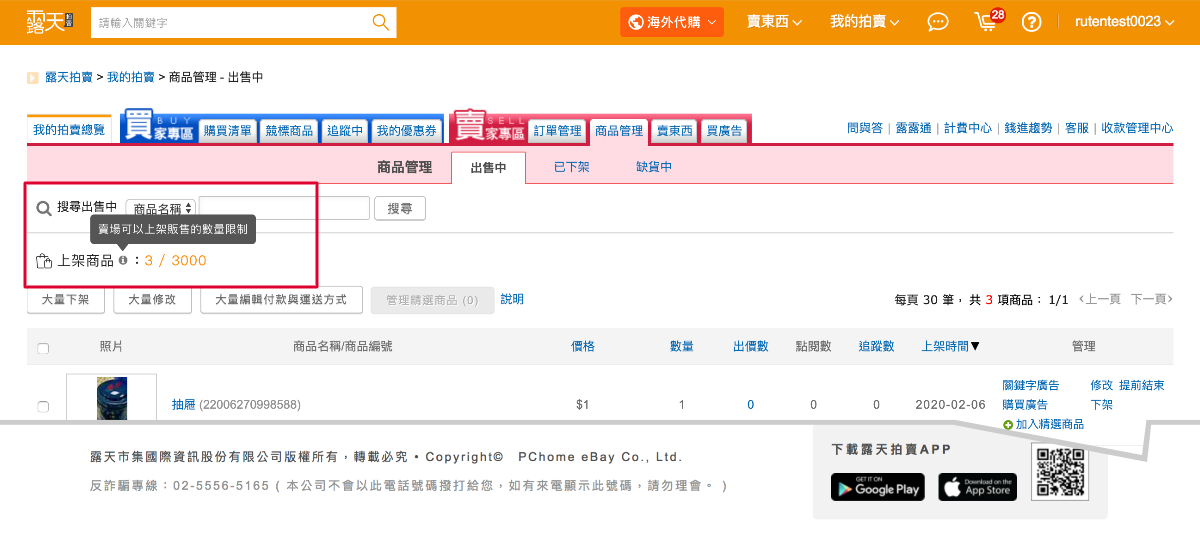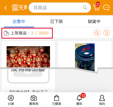 - • 可至 商品管理>出售中 查詢是否超過商品上限。建議您優先保留您的熱賣商品,並將其他商品自行下架。